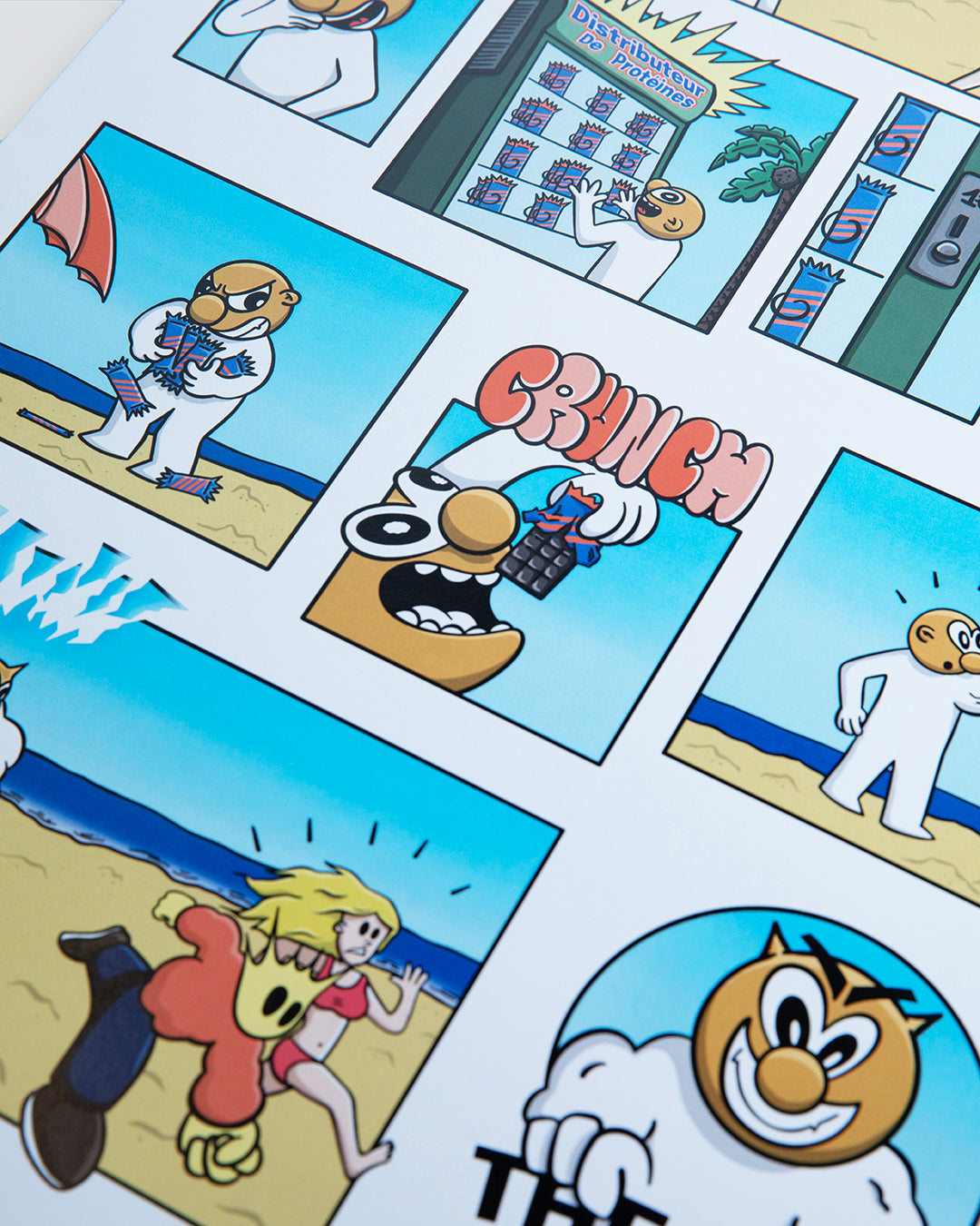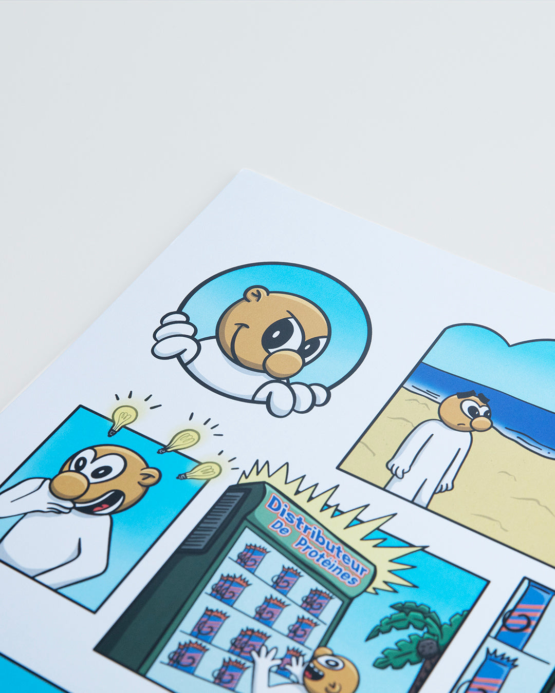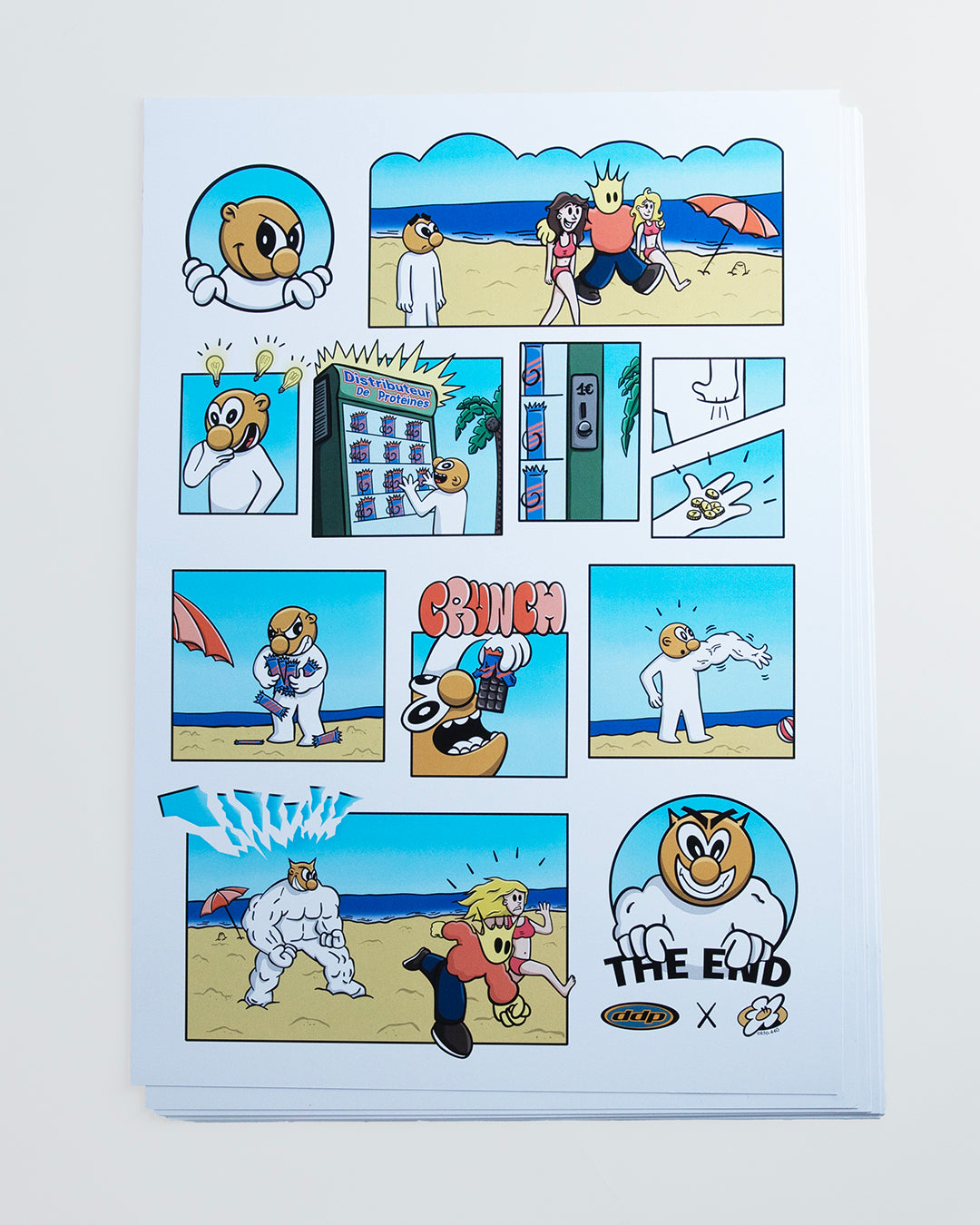 Cette affiche au format A3 est imprimée sur papier épais 250 g, garantissant une belle tenue et une qualité durable. Fruit d’une collaboration avec l’artiste peintre OKTO, le visuel "Distributeur de Protéine" prolonge l’univers graphique DDP et apporte une touche artistique forte à votre intérieur.