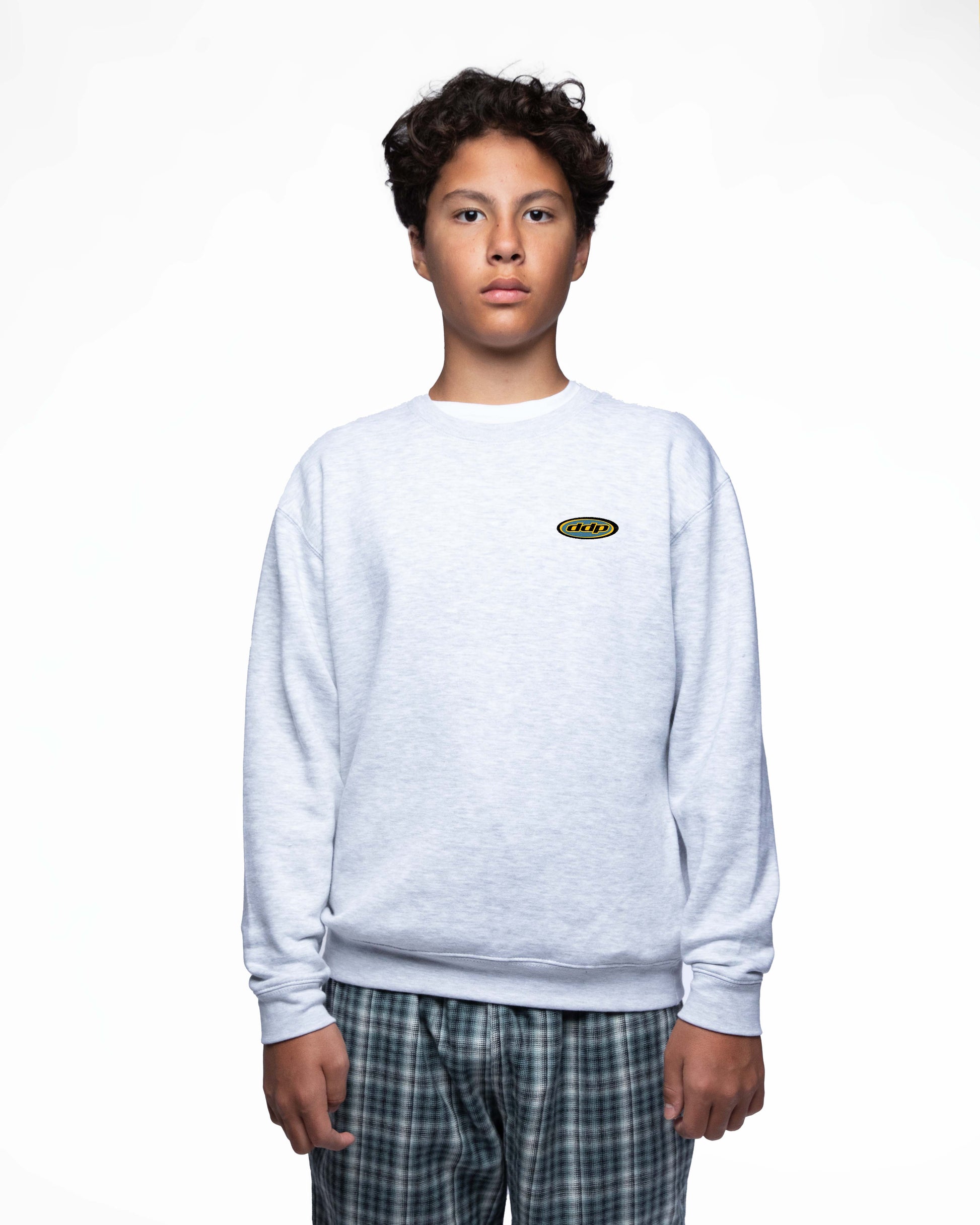 Sweat col rond enfant Petit DDP95 : un sweat sans capuche en coton épais coupe droite, avec le logo Petit DDP95 minimaliste sur la poitrine.