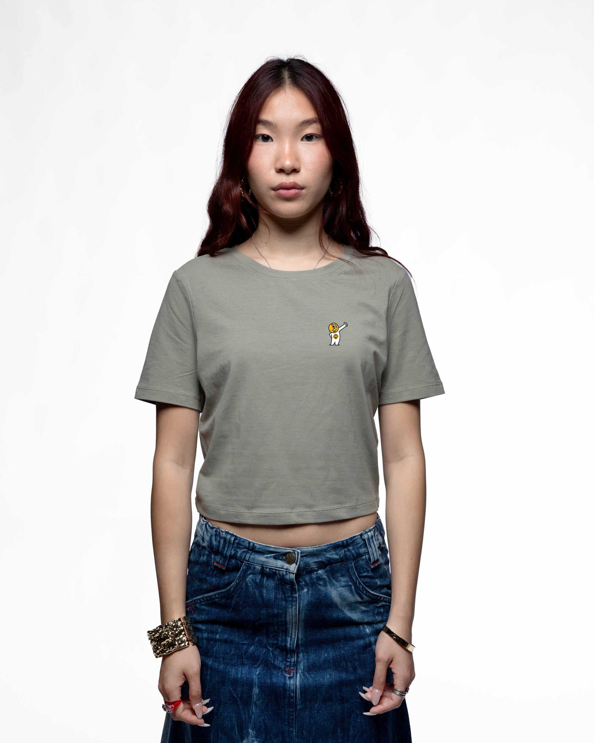 Crop tee femme Eggman95 : un t-shirt court cintré en coton avec le logo Eggman, mascotte iconique de DDP.