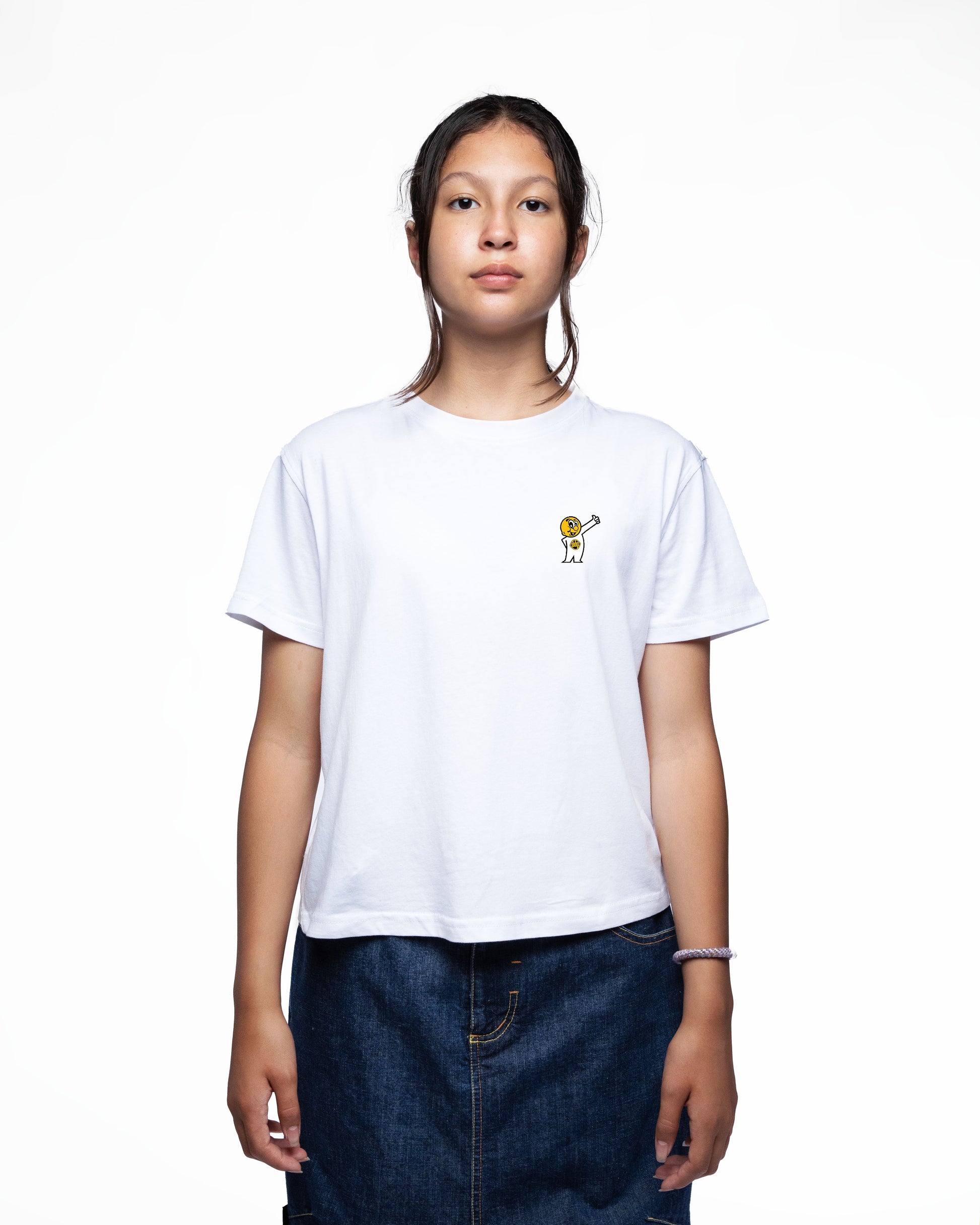 Crop tee enfant Eggman95 : un t-shirt court en coton, avec le logo Eggman95 en patch tissé à l’avant.