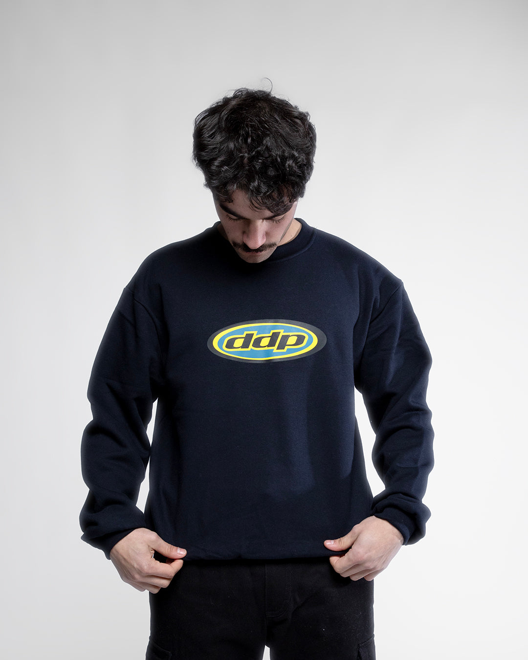 Sweat DDP95 col rond en coton premium 400 g/m². Coupe droite simple et intemporelle. Logo iconique DDP95 sérigraphié à l’avant. Disponible en plusieurs tailles et coloris.