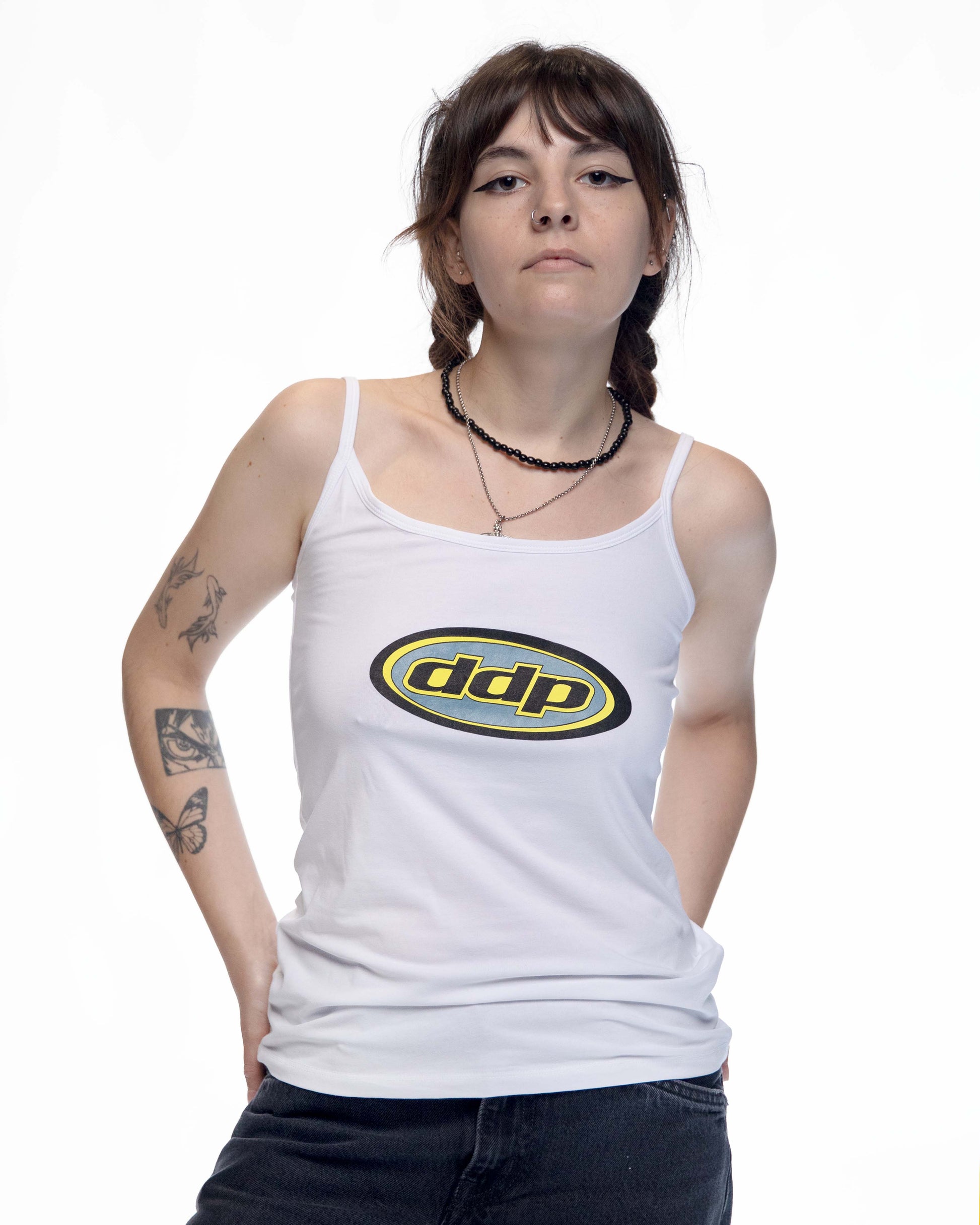 Débardeur femme DDP95 : un basique léger en coton avec bretelles fines, coupe droite, orné du logo iconique DDP95 sérigraphié.