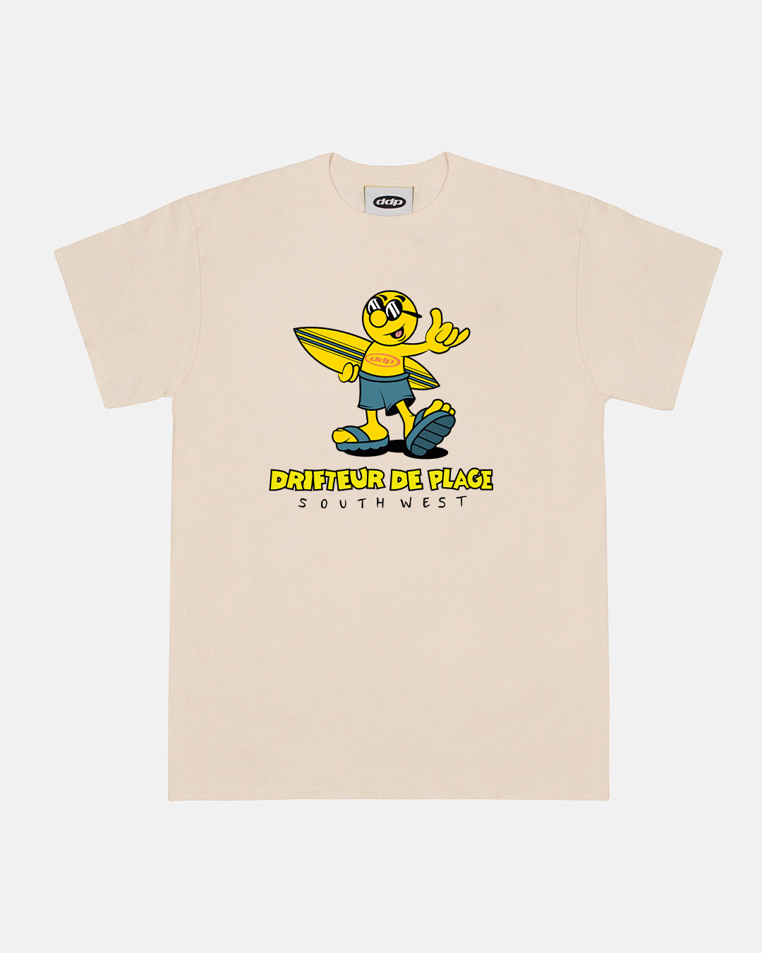 T-shirt Drifteur de Plage en coton 180 g/m². Coupe droite confortable, impression sérigraphiée de qualité. Une création graphique originale qui prolonge l’univers DDP, inspirée de l’esprit libre des années 90.