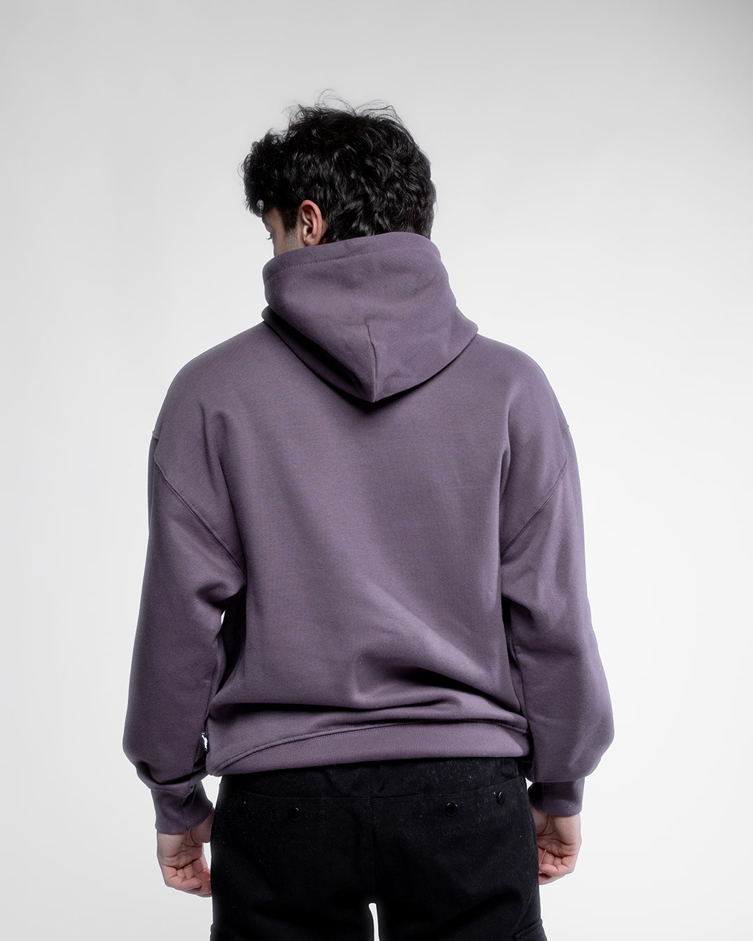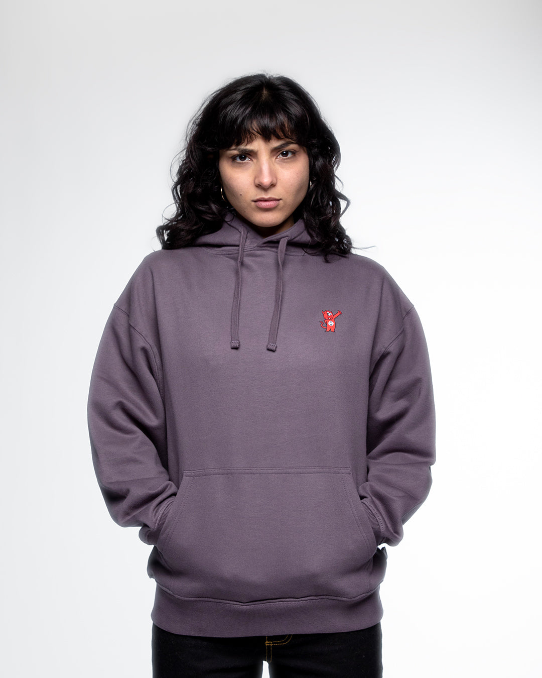 Hoodie Eggdevil : un sweat à capuche en coton épais coupe boxy, avec logo Eggdevil appliqué en patch tissé sur la poitrine.