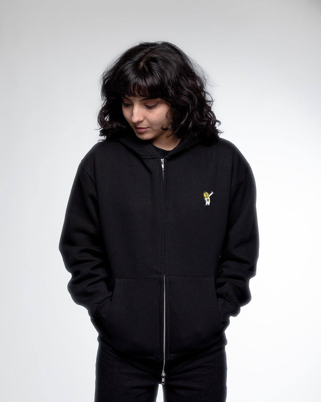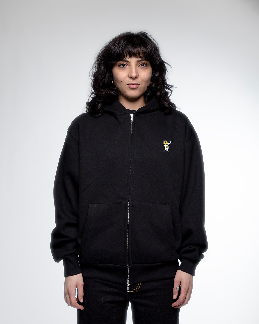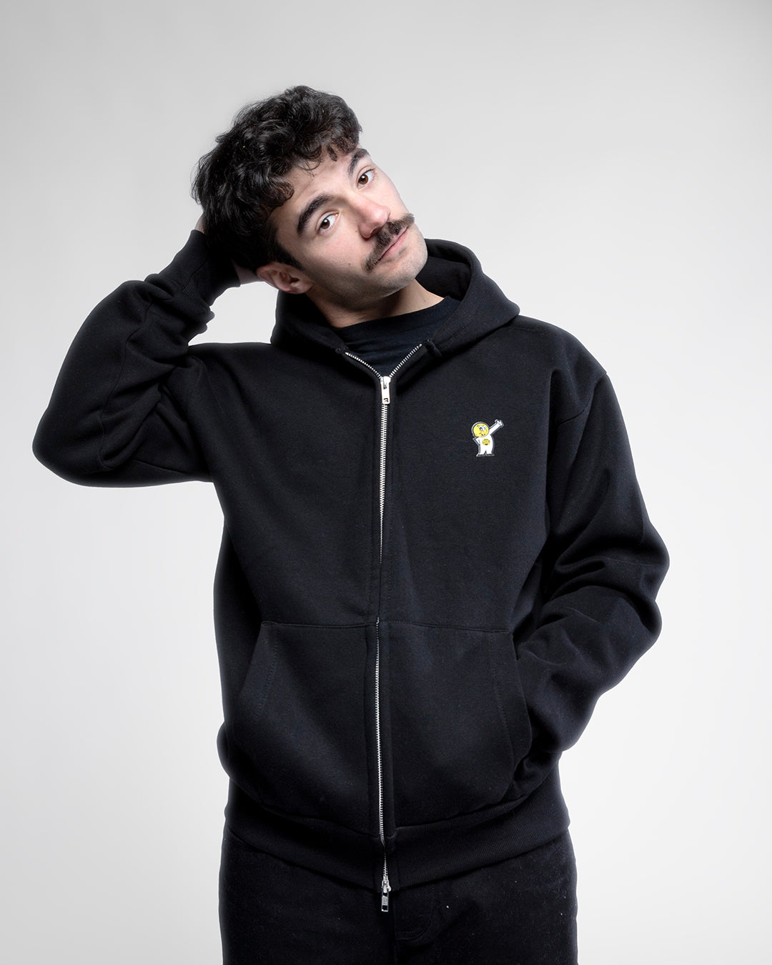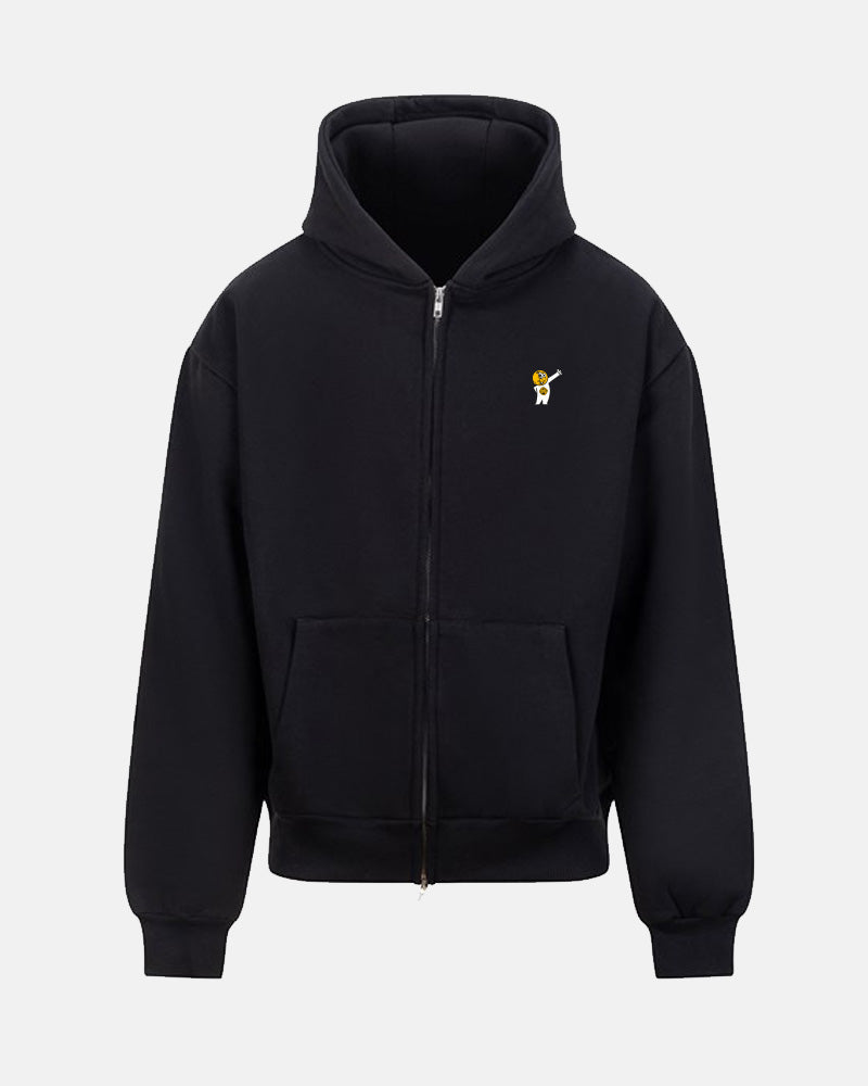 Le Eggman95 Zoodie reprend la coupe boxy inspirée des années 90. Conçu en coton premium 400 g/m², il associe confort, durabilité et praticité grâce à sa fermeture zippée. Visuel Eggman95 iconique en patch tissé à l'avant.