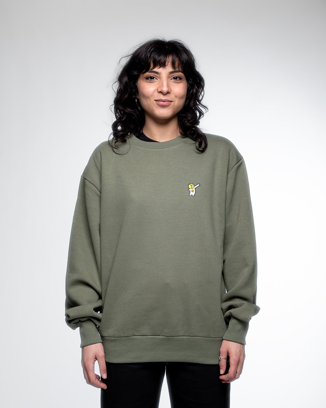 Sweat Eggman95 col rond en coton premium 400 g/m². Coupe droite simple et intemporelle. Visuel Eggman95 iconique appliqué en patch tissé. Disponible en plusieurs tailles.
