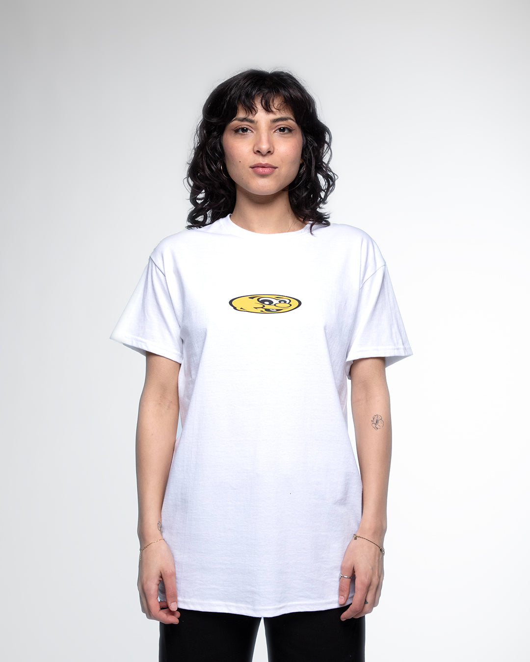 T-shirt Flat Eggman : un basique en coton coupe droite, orné du visuel graphique exclusif Flat Eggman en flock transfert à l’avant.