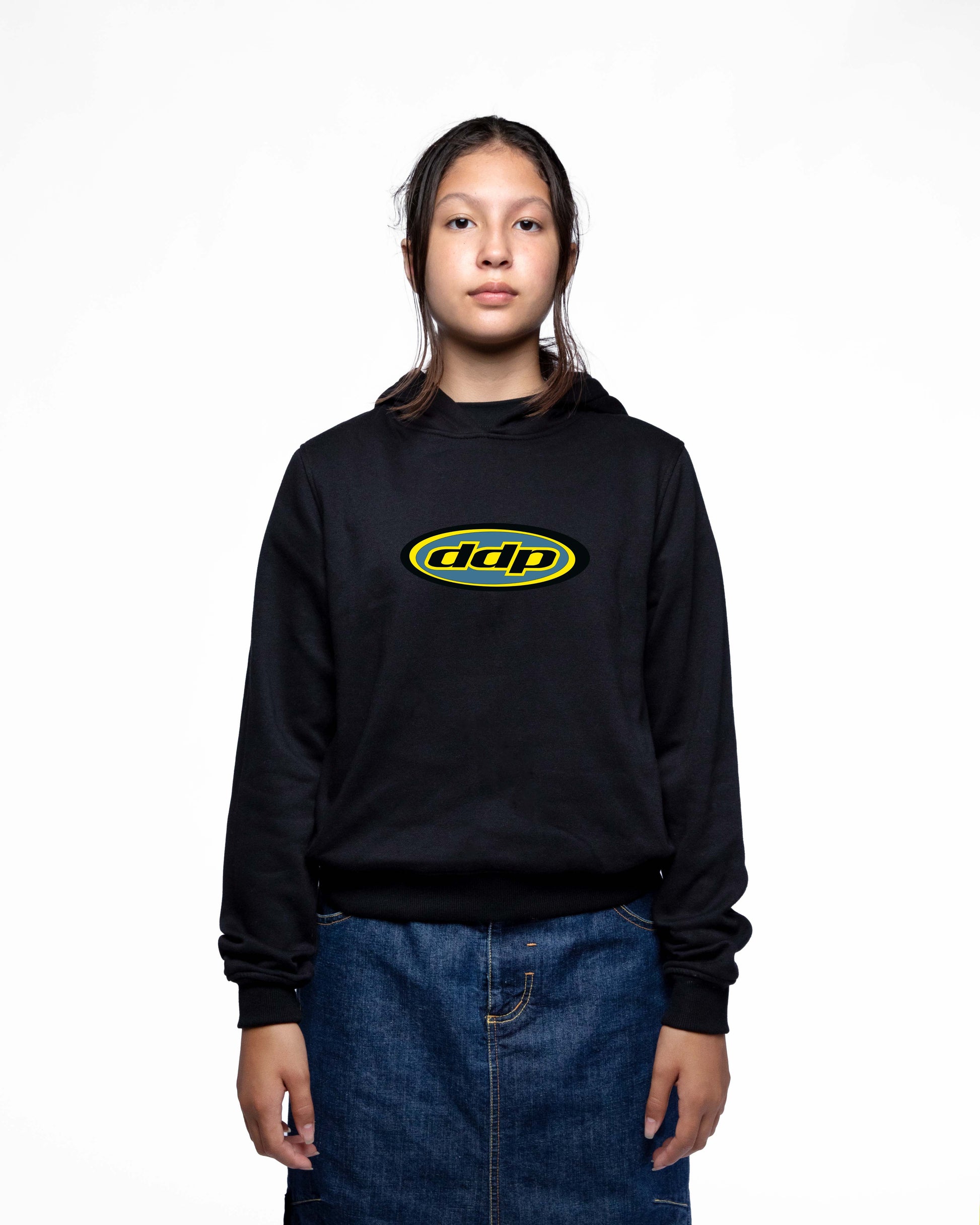 Hoodie crop enfant DDP95 : un sweat à capuche court en coton épais, avec le logo iconique DDP95 sérigraphié à l’avant.