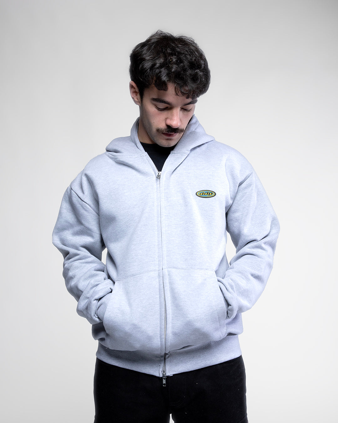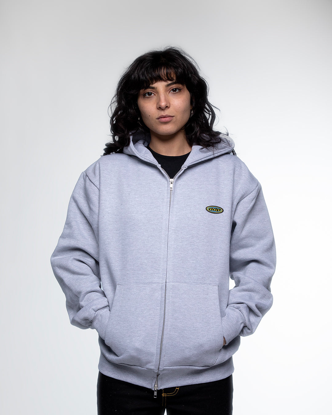 Petit DDP95 Zoodie : un hoodie zippé coupe boxy en coton épais, avec le logo Petit DDP95 minimaliste sur la poitrine.
