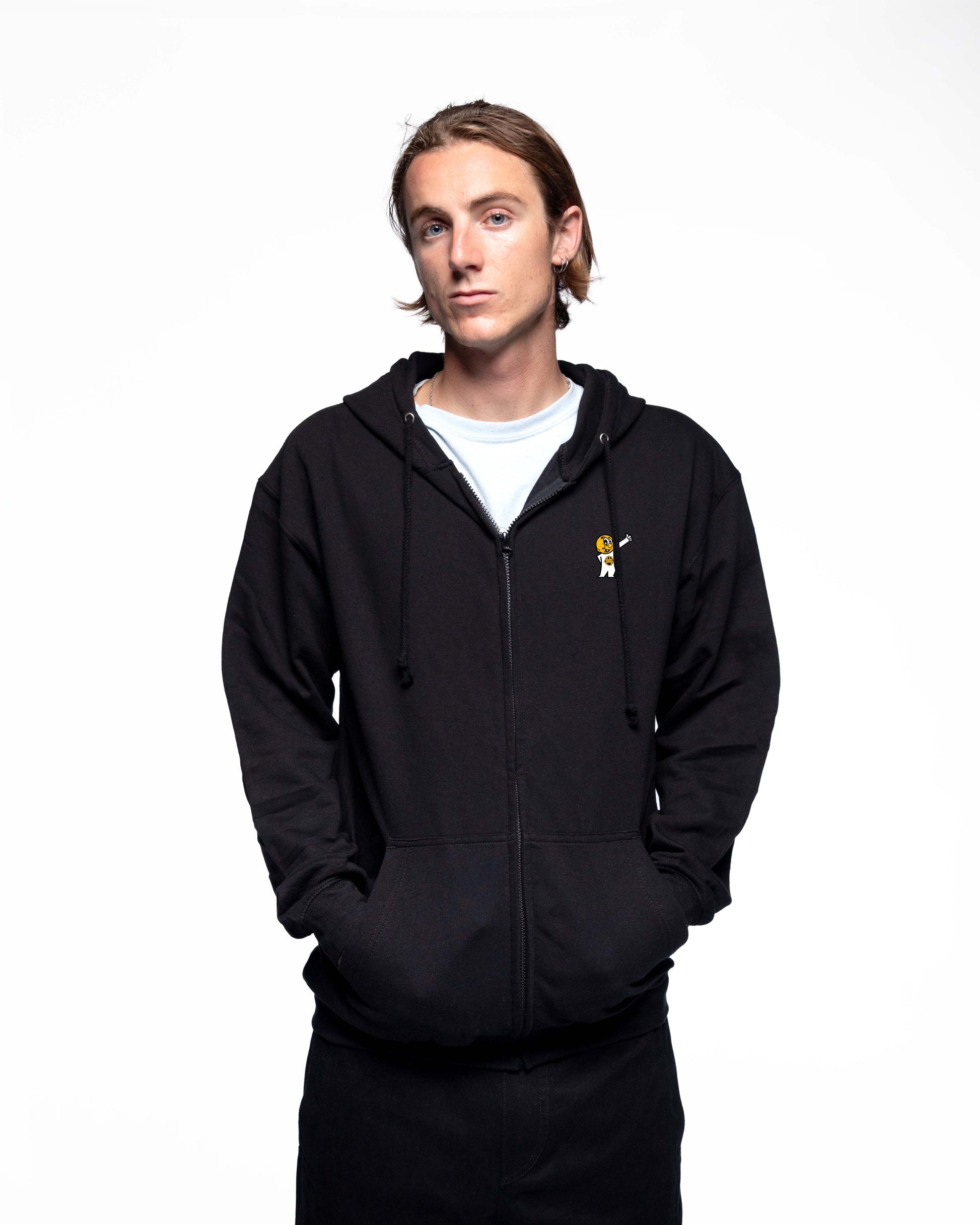 Le Eggman95 Zoodie reprend la coupe droite inspirée des années 90. Conçu en coton premium 300 g/m², il associe confort, durabilité et praticité grâce à sa fermeture zippée et ses cordons de resserrage. Visuel Eggman95 iconique en patch tissé à l'avant.